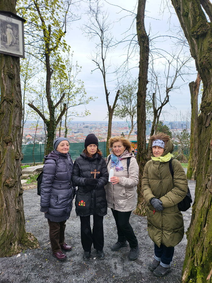 V sobotu 28. marca 2026, v zime a vetre, sme sa pomodlili Krížovú cestu na Kalvárii v Bratislave. Modlili sme sa na úmysel svätého otca Leva XIV. za pokoj vo svete a odprosenie hriechov vojny.