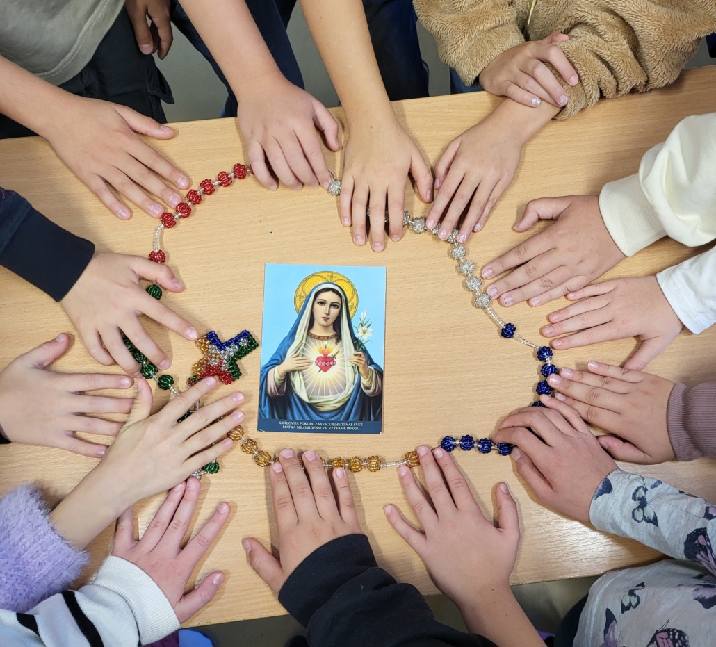 V projekte s názvom – Milión detí sa modlí ruženec – sme prejavili solidaritu a jednotu s deťmi v krajinách vojnových konfliktov s nádejou na ukončenie týchto vojen, aby všetky deti na svete mali jedlo, domov a možnosť chodiť do školy.